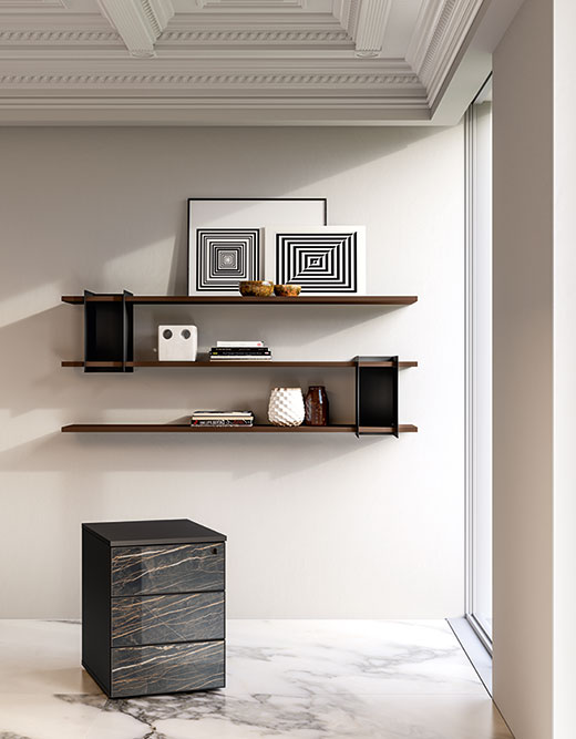 Ideal for organizing documents, objects, and accessories in an orderly way, it fits into contemporary professional environments, helping to optimize vertical space. Clean lines and balanced proportions allow shelves to be combined harmoniously with desks, sideboards, and bookcases, ensuring stylistic consistency.